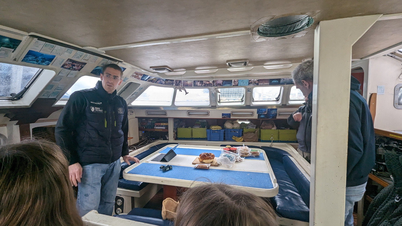 C’est marrant car déjà lundi midi je suis monté sur le voilier d’un copain des Glénans, Tilman, qui viens s’installer en Cornouailles pour monter sa structure de plongées et autres loisirs en voilier : Aora-exploration. Deux fois en une semaine, après plusieurs mois sans mettre les pied sur un bateau, ça fait du bien !