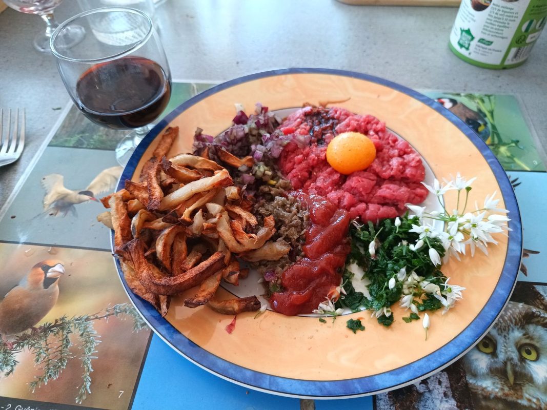 - Un repas stack tartare saveur ail des ours et frite de topinambour du jardin,